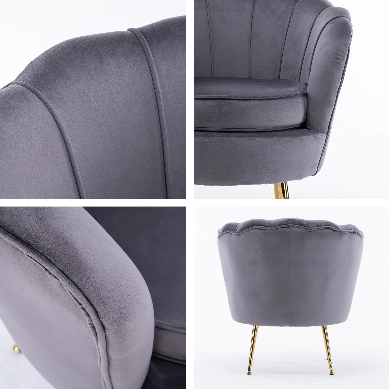 Armchair Lounge Chair Accent Velvet Shell Scallop + Ottoman Footstool Round GREY