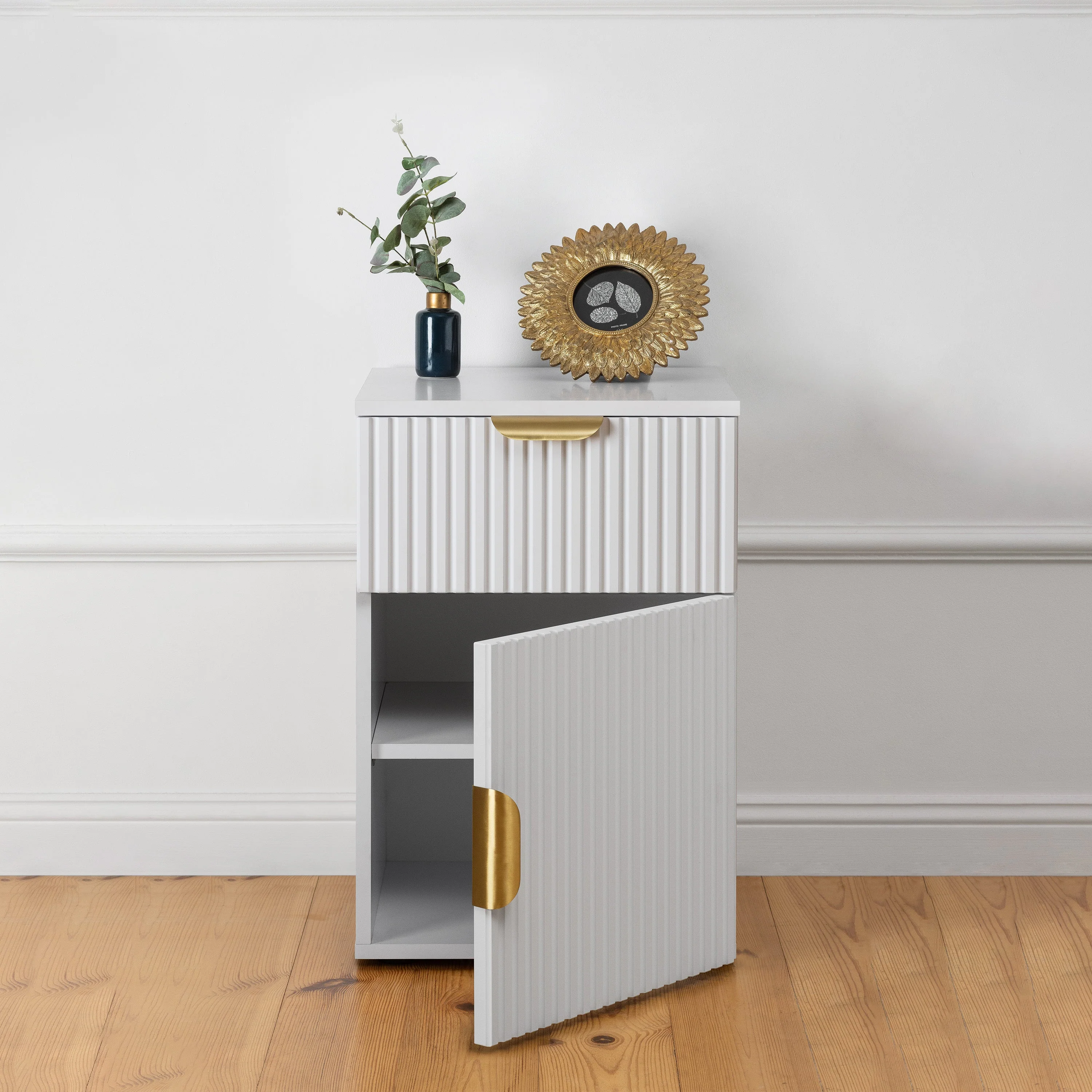 PORTO BEDSIDE TABLE - WHITE - FLUTED - PULL BRASS